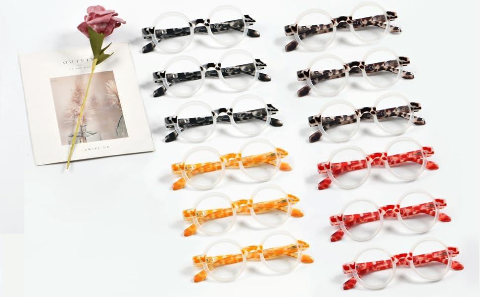 12 Pairs Stylish Readers: Convenient set of 12 vibrant specs means you'll have a pair handy wherever you are. You don't need to run around looking for reading eyeglasses when you want to read.