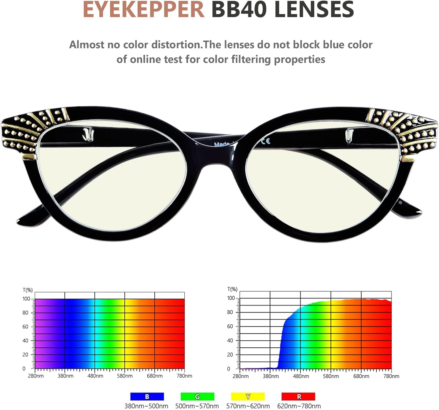 Eyekepper 4-Pack Reading Glasses Blue Light Blocking Chic Computer Glasses Readers Women +0.0(Blue Light Blocking-b40-4 Pairs)