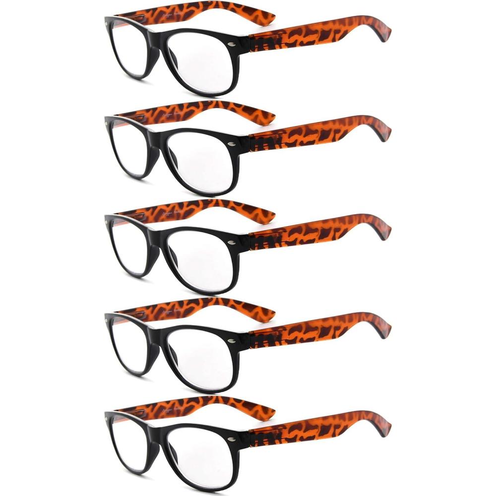 Eyekepper Classic 80’s Reading Glasses for Women 5 Pairs Readers Include Reading Sunglasses(Demi Arm-5pcs All Clear Lens)