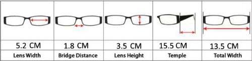 READING GLASSES DIMENSION – Frame material is Plastic, Lens width about 1 7/8 inches (48mm), Frame width about 5 1/2 inches (140mm), Lens height about 1 7/16 inches (36mm), Frame height about 1 7/8 inches (47mm), Bridge (DBL) about 1/2 inches (12mm), Temple length about 5 1/2 inches (140mm), with spring hinge