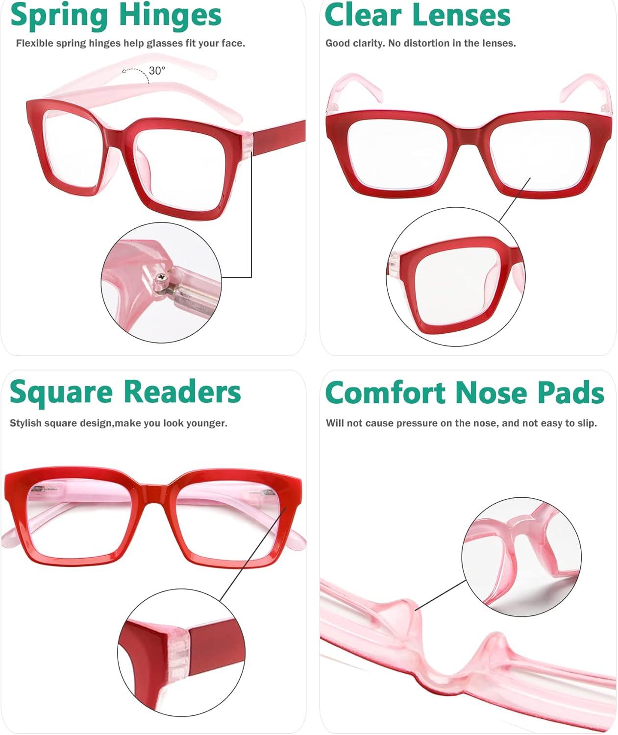 Eyekepper Ladies Reading Glasses – Oversized Square Design Readers for Women Red(Red)