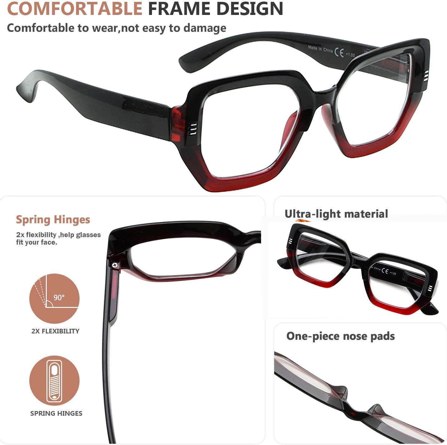 This fashionable reading glasses use A-class CLEAR LENS/SCRATCH lenses which have higher precision as well, scratch-resistant coating technology improves visual clarity and keeps lenses clear optimal viewing.