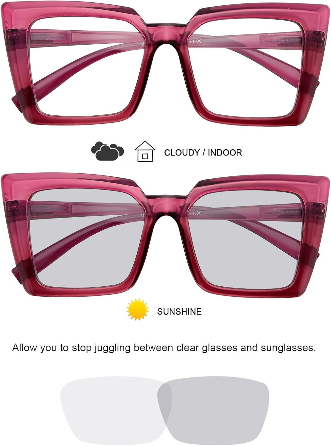 Eyekepper Transition Photochromic Reading Glasses for Women Oversized Readers(Purple)