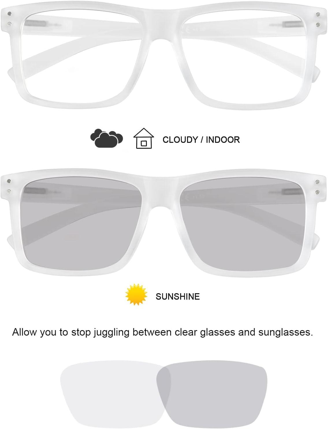 Eyekepper Transition Photochromic Reading Glasses Oversized Large Frame Yellow +4.0(Clear)