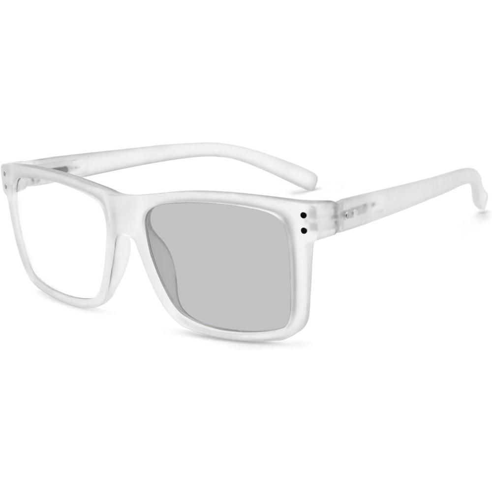 Photochromic grey lenses reading eyeglasses.